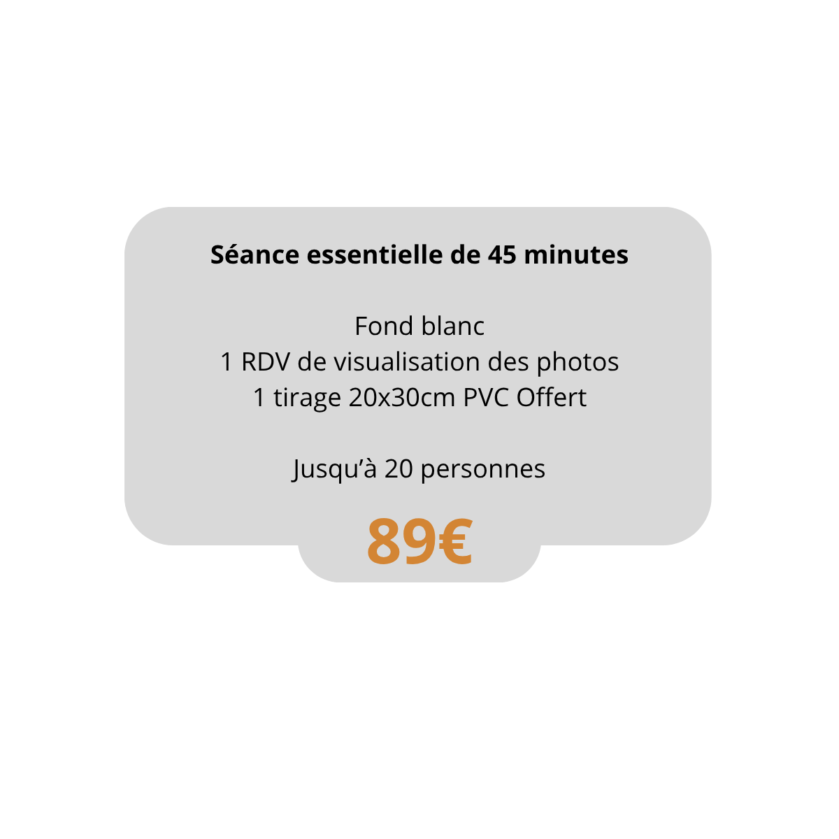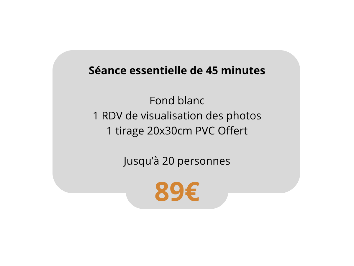 - Durée : Environ 1h00 de prise de vue.